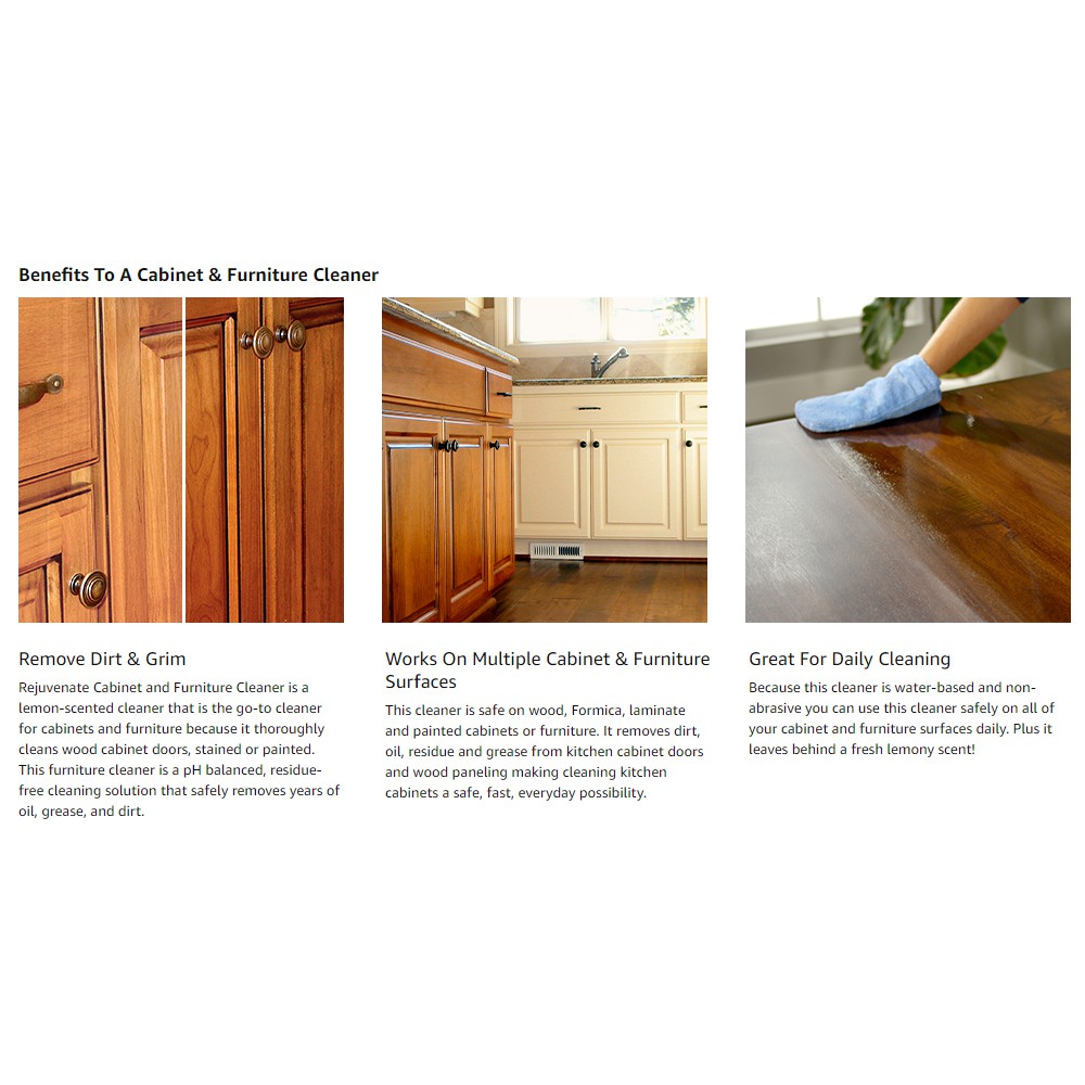 Dip the corner of a rag into the mixture and then rub it into the wood. Rejuvenate cabinet & furniture restorer restores life to previously sealed and finished wood, formica, and laminate surfaces on a wide variety of kitchen cabinets, bathroom cabinets, furniture and wall paneling. It did a great job removing the grease, fingerprints and ordinary buildup on my cabinets. It thoroughly cleans wood cabinet doors, stained or painted woods, and is a ph balanced, residue free cleaning solution that safely removes years of oil, grease and dirt. I do this simple wood restore on my oak cabinets every year with a some terry cloth towels and a bottle of restore a finish. Rejuvenate cabinet & furniture cleaner ph neutral streak and. Furniture cleaner for kitchens and bathrooms. Our kitchen and bathroom wooden cabinets are over 30 years old. Rejuvenate cabinet & furniture polish and restorerinstantly fills in scratches and restores shine and luster to kitchen cabinets. There is enough in one bottle to do an entire set of kitchen cabinets and 2 bathroom vanities (400 sq. Rejuvenate cabinet and furniture cleaner is great for everyday cleaning. 99 ($0.54/fl oz) get it as soon as mon, jul 12. Brush in the direction of the grain and try to avoid air bubbles from forming and drying on the surface of the.